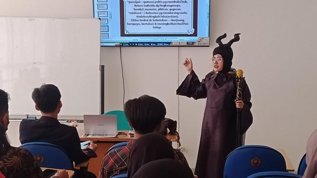 Seorang dosen perempuan di Universitas Jember (Unej) memiliki gaya unik saat mengajar di kelas perkuliahan. Dosen tersebut cosplay Maleficent, sebuah karakter Disney.