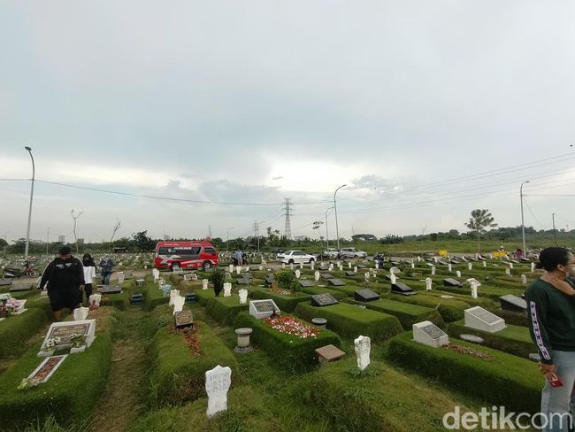 Pantauan detikJatim banyak warga yang ziarah kubur di TPU Keputih, Surabaya. Tak hanya di blok pemakaman umum tapi juga di makam COVID-19.