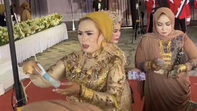 Sebelumnya, dalam video itu terlihat ibu-ibu yang menjadi bridesmaids kompak memakai baju warna cokelat memakai perhiasan emas berukuran besar.