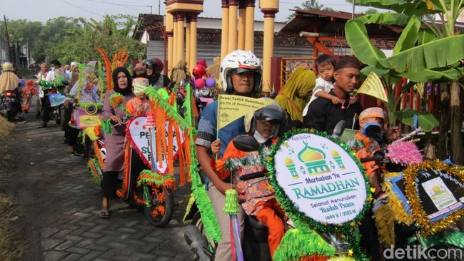 Para pelajar dan santri cilik di Bojonegoro menggelar pawai menyambut Ramadan 1444 H. Mereka menghias motor dengan berbagai hiasan yang mengajak untuk beribadah puasa.