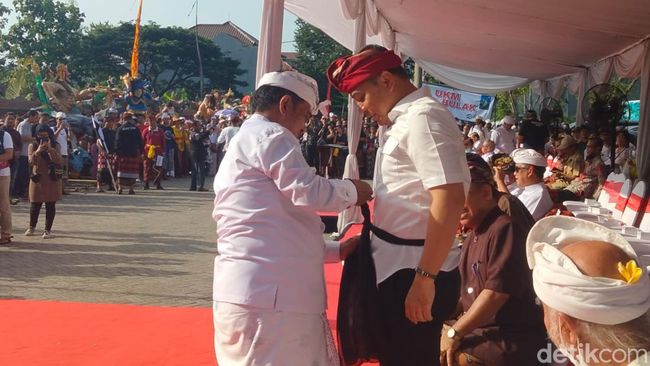 Kehadiran Eri sendiri mendapat sambutan hangat dari umat Hindu. Ia tampak disambut dengan sejumlah pertunjukan tarian Dewa Ruci bertemakan Kisah Sang Bima mencari Tirta Pawitra.