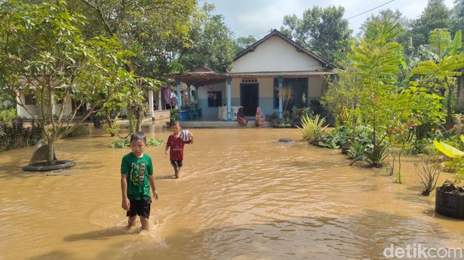 Luapan air sungai yang cukup deras menggenangi puluhan hektare sawah. Air juga merendam halaman sekolah dan masuk ke permukiman warga. Beruntung pada hari pertama puasa Ramadhan, kegiatan belajar mengajar tengah libur.