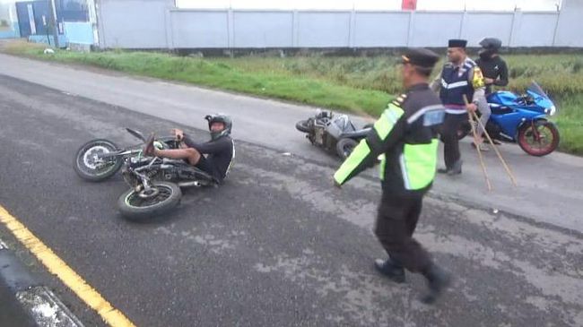 "Kebetulan digerebek Polsek Mojoagung, anak-anak balap liar ini mau lari ke kampung tapi ditutup oleh warga. Ada sekitar 10 kendaraan yang terjaring, semua knalpot brong dan tidak standar," ungkap Gozi.