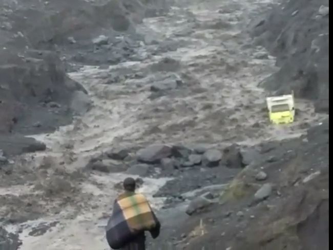 Sebuah truk penambang pasir diterjang banjir lahar Gunung Semeru. Peristiwa ini terjadi Senin (27/3) pukul 14.00 WIB di sungai Curah Kobokan, Desa Supit Urang, Kecamatan Pronojiwo, Lumajang.
