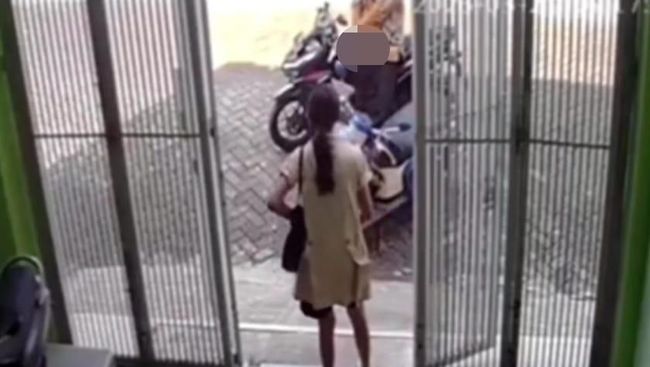 Saat perempuan itu membuka pintu pagar, pelaku terlihat mengeluarkan alat vitalnya sambil tetap duduk di motor.