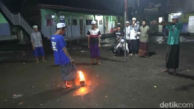 Simak Video "Santri Mojokerto Main Sepak Bola Api Sembari Menunggu Sahur"