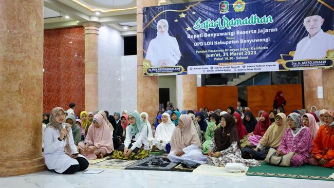 Bupati Banyuwangi Ipuk Fiestiandani bertemu dengan pengurus dan anggota Lembaga Dakwah Islam Indonesia (LDII) Banyuwangi di Ponpes Ar-Royyan, Desa Jajag, Kecamatan Gambiran, Jumat (31/03/2023). Acara yang dirangkai tarawih bersama itu, berupaya tingkatkan sinergitas penanganan berbagai persoalan sosial yang terjadi di tengah masyarakat.