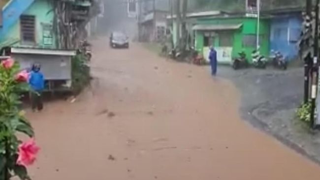 Hujan deras mengguyur wilayah Kota Batu mengakibatkan banjir lumpur. Peristiwa itu terjadi di Jalan Rajekwesi atau Simpang Tiga Songgoriti, Kota Batu.
