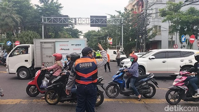 "Arus lalu lintas dari Jalan Indragiri menuju ke Jalan Dr Soetomo dibelokkan ke Jalan Diponegoro," kata salah satu petugas kepolisian yang ada di lokasi, Rabu (5/4/2023).