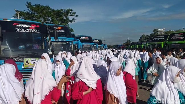 "Hari ini bersama-sama mudik itu hampir 2.800 santri. Sisanya yang kota-kota dekat sini tidak ikut mudik bareng," terangnya.