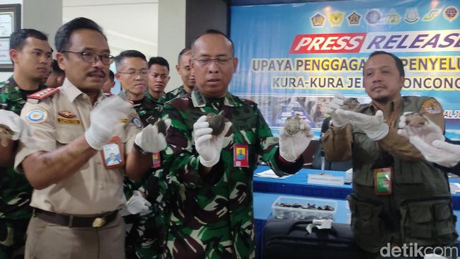 "Saat melewati x ray, koper-koper tersebut terdeteksi membawa barang mencurigakan. Setelah dilakukan pemeriksaan ditemukan labi-labi sebanyak 5.632 ekor. Dari peristiwa ini kami mengamankan seorang tersangka warga Jakarta," kata Heru di Mako Lanudal Juanda, Senin (10/4/2023).