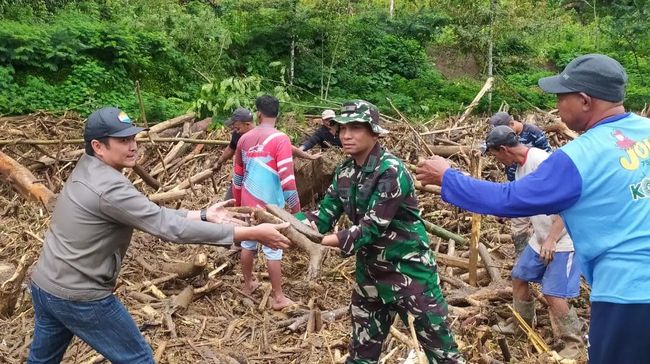 "Pembersihan material banjir bandang yang menutup aliran Kali Talang di Dusun Kenteng Desa Ngatru, Ngantang, Kabupaten Malang bersama pihak terkait," kata Hanis.