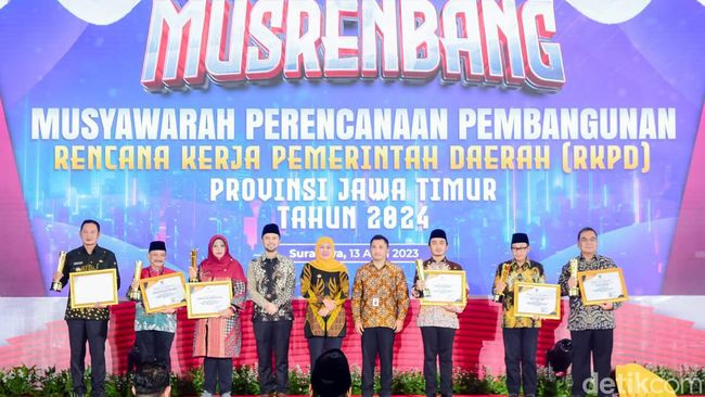 "Karena ini tahun terakhir kami memimpin Musrenbang bersama Pak Wagub, izinkan saya meminta maaf jika banyak hal yang kurang. Tapi izinkan kami yakinkan, bahwa poin-poin pembangunan akan berdampak pada kemajuan dan kesejahteraan masyarakat Jawa Timur," ungkap Khofifah di Shangri-La Hotel Surabaya, Kamis (13/4/2023) malam.