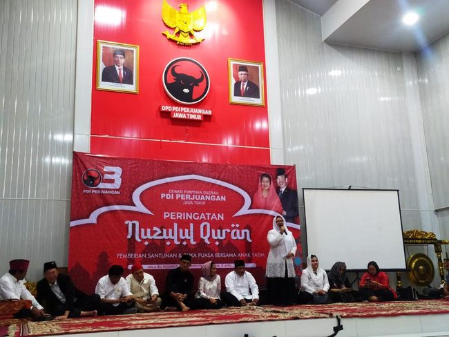 DPD PDIP Jatim melalui organisasi sayap Baitul Muslimin Indonesia (Bamusi) menggelar acara peringatan Nuzulul Quran 1444 Hijriah, Senin (17/4/2023) petang.