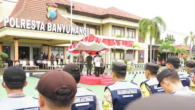 Sebagai persiapan, gelar pasukan digelar di Mapolresta Banyuwangi, Senin (17/4/2023). Mereka akan terjun dalam Operasi Ketupat Semeru 2023.