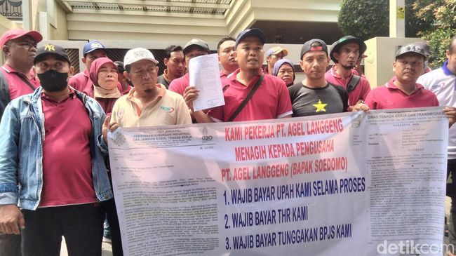 "Hari ini kita tidak demo tapi ingin menghantarkan surat yang dibuat oleh pemerintah melalui Dinas Ketenagakerjaan Provinsi Jawa Timur, berupa surat imbauan PT Agel Langgeng harus membayar upah kami selama berproses. Yang kedua harus membayar THR kami, dan ketiga harus membayar tunggakan BPJS yang hampir tiga bulan ini tidak dibayarkan," kata MZ Alim kepada wartawan, Selasa (18/4/2023).