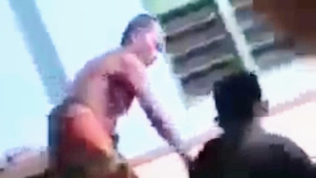 Meski suaranya samar, sepintas di video itu terdengar pria bertelanjang dada itu meminta pria yang sedang duduk bersila berhenti tadarus karena suaranya dianggap membuat bising.