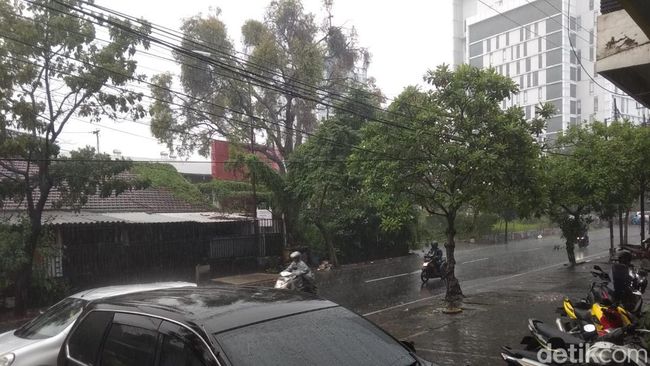 Dari pantauan detikJatim, hujan tiba-tiba turun padahal matahari masih terlihat terik. Pemotor yang semula berjalan di tengah jalan langsung menepi.
