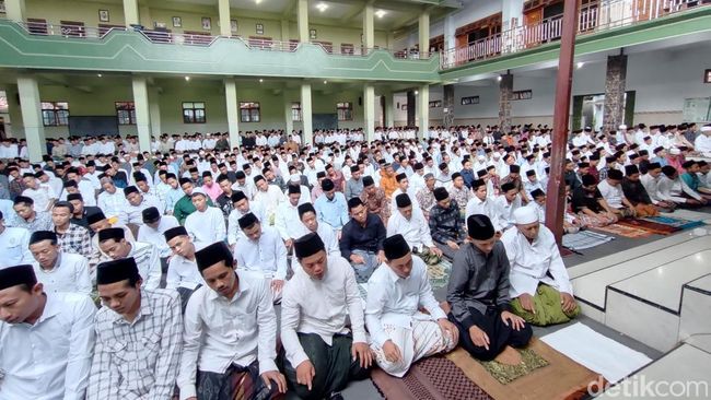 Ratusan santri putra dan putri, serta masyarakat sekitar antusias mengikuti sholat Idul Fitri yang digelar di halaman ponpes Al Falah Ploso. Selepas salat Subuh, dari pantauan detikJatim , warga berbondong-bondong datang ke pondok.