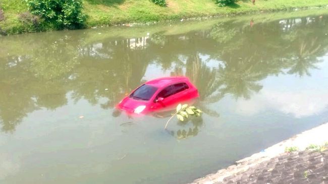 Sebuah mobil yang dikendarai satu keluarga di Tulungagung tercebur sungai. Beruntung seluruh penumpang dan pengemudi berhasil diselamatkan.