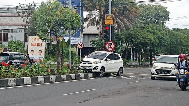 Dina, salah satu detikers yang kebetulan melintas di Jalan Bung Tomo dan melihat fenomena mobil nyangkut di pulau jalan itu melaporkan bahwa pria pemilik mobil itu berada di lokasi bersama anaknya yang masih balita.