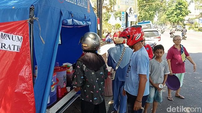 "Iya ini habis perjalanan, capek haus anak minta minum eh ada minuman gratis. Pas cocok ini cuacanya panas juga soalnya," kata Hadi, salah satu pengguna jalan, Kamis (27/4/2023).