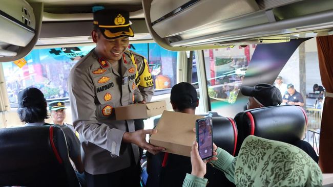 "Alhamdulillah hari ini kita layani pemudik memberikan jajanan bekal di bus saat mudik," tandasnya.