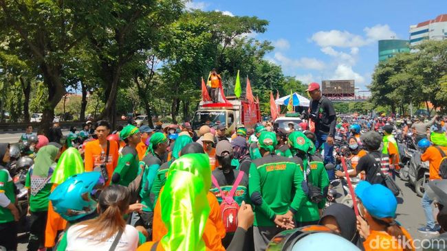 "Macet banget, tadi saya dari arah Sidoarjo. Saya lupa kalau hari ini Hari Buruh, tahu begitu lewat gang-gang di dalam biar nggak kejebak macet," kata Yusuf.