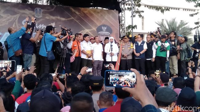"Maka hubungan industrial antara buruh, pengusaha, pemerintah harus bersambung harmonis. Kawan sekalian saya kembali menyampaikan ini pada Bulan Syawal, minal aidzin wal faidzin mohon maaf lahir batin," lanjutnya.