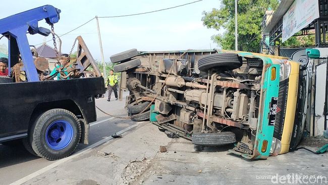"Oleng itu tadi, ini nabrak samping truk. Aku berusaha hindari buang kiri, malah guling," ungkap Nur.