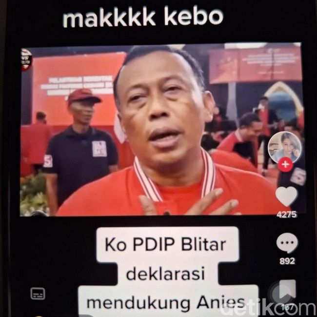 Dalam video tersebut tertulis 'Ko PDIP Blitar deklarasi mendukung Anies Badwedan.....🤷🤷🤷'. tulis akun tersebut seperti dilihat detikJatim, Rabu (3/5/2023).