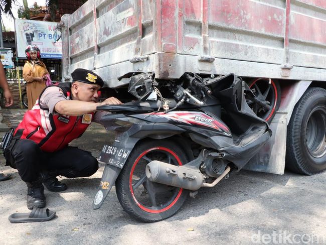 "Saya kan sudah turun dari truk. Mau memeriksa muatan, tiba-tiba ditubruk dari belakang, sudah saya teriaki, tapi pengendara motor tidak berusaha mengerem atau gimana. Akhirnya bruk," imbuh Waluyo.