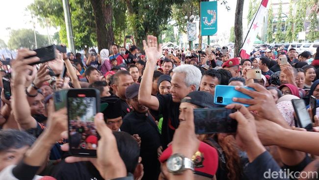 Calon presiden PDIP Ganjar Pranowo berkunjung ke Alun-Alun Jember. Ganjar langsung berbaur dengan masyarakat saat tiba untuk berolahraga di momen car free day (CFD). Ganjar pun disambut teriakan dari masyarakat.