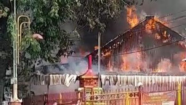 Kebakaran melanda Klenteng Hiap Thian Kion di simpang 3 Klenteng, Kecamatan Mojosari, Mojokerto. Saat ini, 5 mobil pemadam kebakaran (PMK) berada di lokasi untuk memadamkan api.