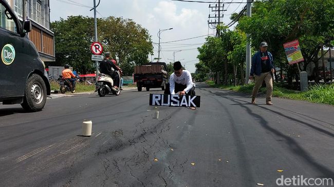 Aksi pria ini dilakukan dengan salah satunya duduk di ruas jalan yang rusak di kawasan Wiyung pada Senin (8/5/2023) siang. Kusnan melakukan aksi teatrikal dengan membawa papan bertuliskan 'RUSAK'. Kusnan mengaku bingung, jalanan utama di Kota Surabaya masih ada yang miris kondisinya.