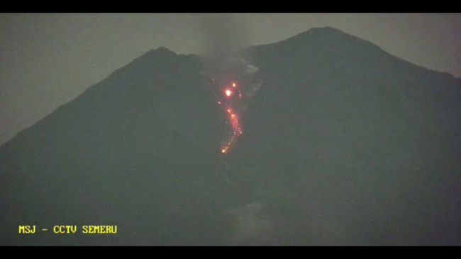 Aktivitas vulkanik Gunung Semeru berupa guguran lava pijar terekam CCTV petugas pada Selasa (9/5/2023) dini hari.