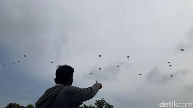 Sebanyak 450 penerjun dari Yonif Para Raider 501/BY Madiun menggelar latihan terjun payung di Kecamatan Udanawu, Kabupaten Blitar. Aksi terjun payung itu dilakukan dalam rangka latihan penyegaran dan taktis.