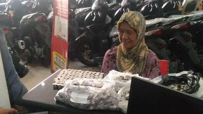 Suainah (65), nenek di Pakis, Kabupaten Malang membeli motor dengan menggunakan uang koin. Uang koin ini merupakan hasil tabungannya selama 2 tahun terakhir.