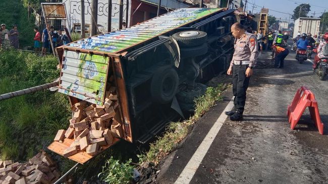 Kecelakaan ini terjadi pada pukul 00.30 WIB dini hari tadi. Namun sampai pagi ini, truk dalam kondisi terguling belum dapat dievakuasi.