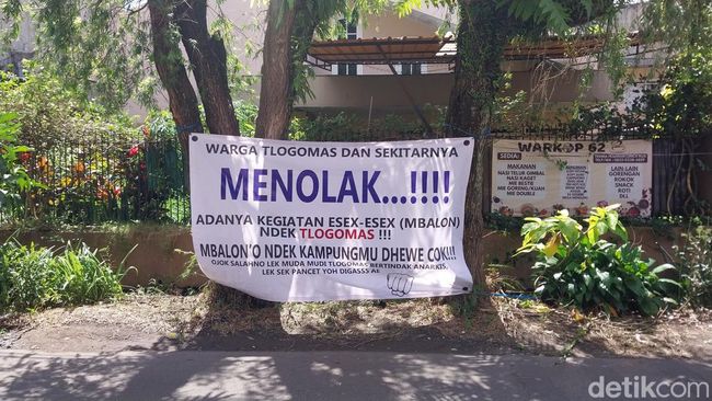 Ojok salahno lek muda-mudi Tlogomas bertindak anarkis, lek sek pancet yo digasss ae," isi spanduk lain yang terpasang di wilayah RW 08.