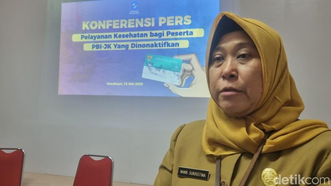 Kepala Dinas Kesehatan Surabaya Nanik Sukristina menyebut ada 239.363 jiwa Penerima Bantuan Iuran Jaminan Kesehatan (PBI-JK) di Kota Pahlawan dinonaktifkan karena bukan warga miskin. Untuk warga yang ber-KTP dan berdomisili Surabaya cukup menunjukkan NIK saat berobat ke fasyankes.