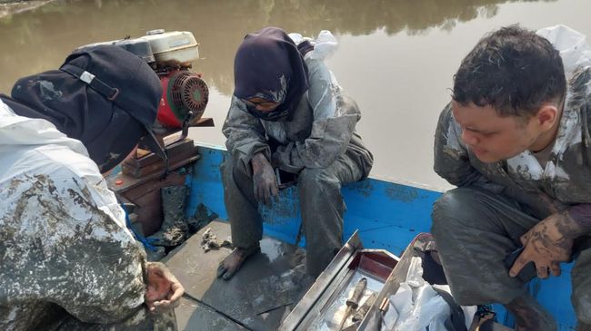 "Kita kejebak lumpur, lumpurnya sudah masuk ke kapal dan kapal tidak bisa bergerak," ujarnya.