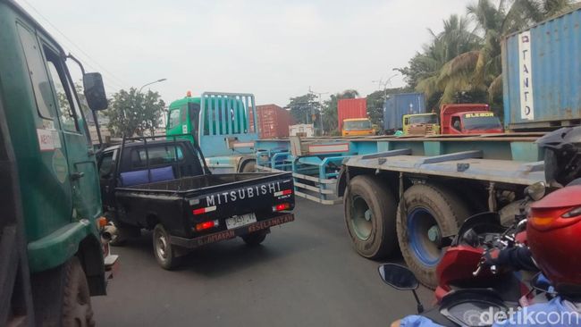 "Tadi disebabkan oleh kegiatan di depo yang mau masuk (untuk bongkar muat), jadi antrean dibuat 1 jalur dan sekarang lancar. Lalu ada peningkatan volume kendaraan, tidak ada truk mogok seperti kemarin," ujarnya.