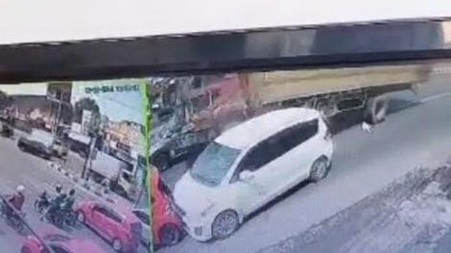 Tiba-tiba sebuah truk dengan kencang melaju dan sempat naik ke trotoar dan sempat menyerempet kendaraan yang berada di depannya.
