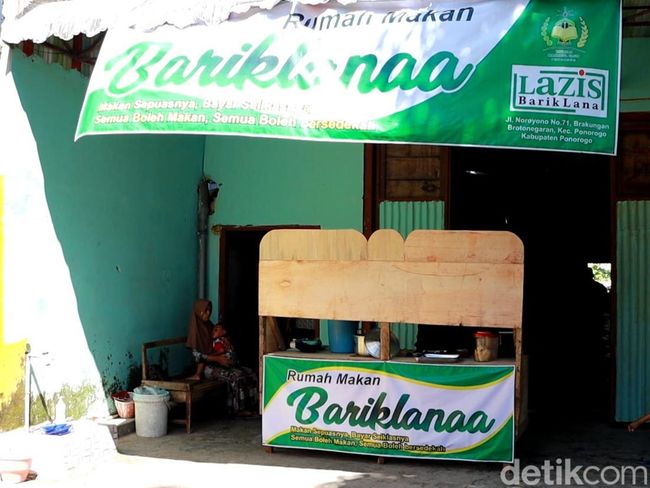 Di Ponorogo, ada warung sedekah yang tengah ramai dijejali pembeli. Namanya warung makan Bariklana yang lokasinya di Kelurahan Brotonegaran, Kecamatan/Kabupaten Ponorogo. Di sini, pembeli bisa makan sepuasnya dan membayar seikhlasnya.