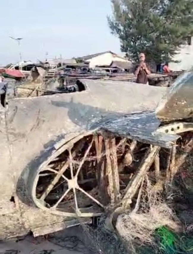 "Gaes! Nelayan Weru menemukan bangkai pesawat perang," ujarnya.