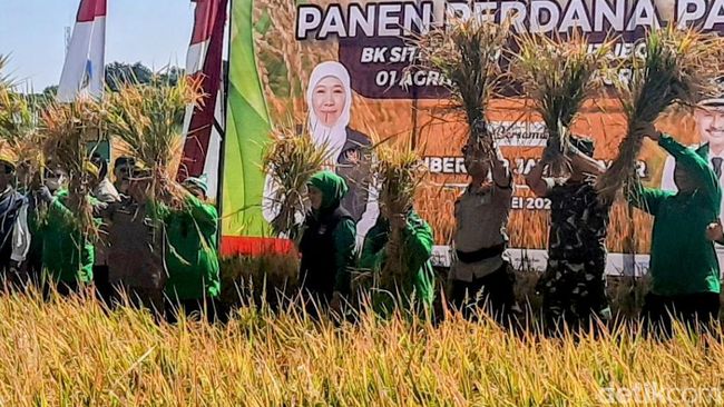 "Kami merasa bersyukur, dari wilayah ini menghasilkan varietas padi unggulan," kata Khofifah Indah Parawansa, kepada sejumlah jurnalis di sela acara panen, Selasa (23/5/2023).