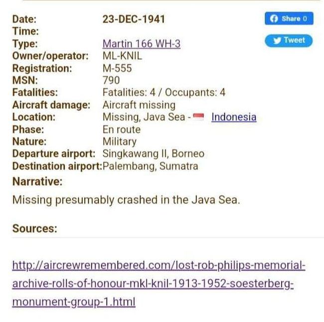 "Namun sebab hilangnya pesawat ini tidak diketahui, apakah faktor cuaca, kesalahan manusia, kerusakan mesin, sebab lain dan atau disergap oleh pesawat Jepang. Masih misteri," tandasnya.