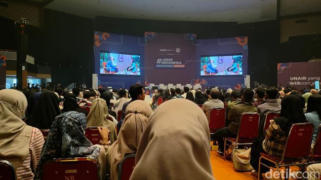 Pantauan detikJatim, antusiasme mahasiswa sudah terasa mulai pukul 08.00 WIB. Mereka berbondong-bondong mengisi kuris Airlangga Convention Center. Padahal, acara utama #DemiIndonesia Goes To Campus Unair baru dimulai pukul 11.20 WIB.