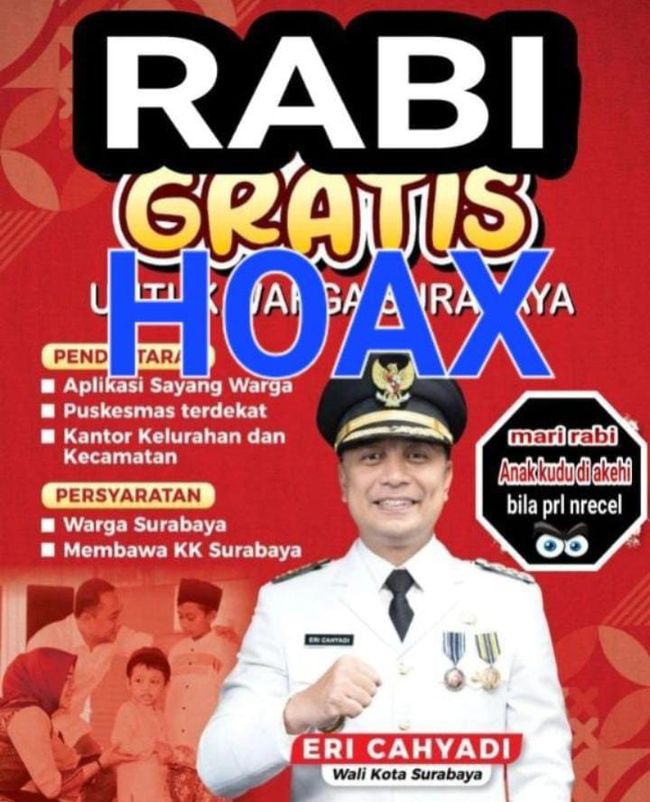 Pemkot Surabaya buka suara terkait beredarnya poster Rabi Gratis di media sosial. Poster nikah gratis tersebut dipastikan hoaks.